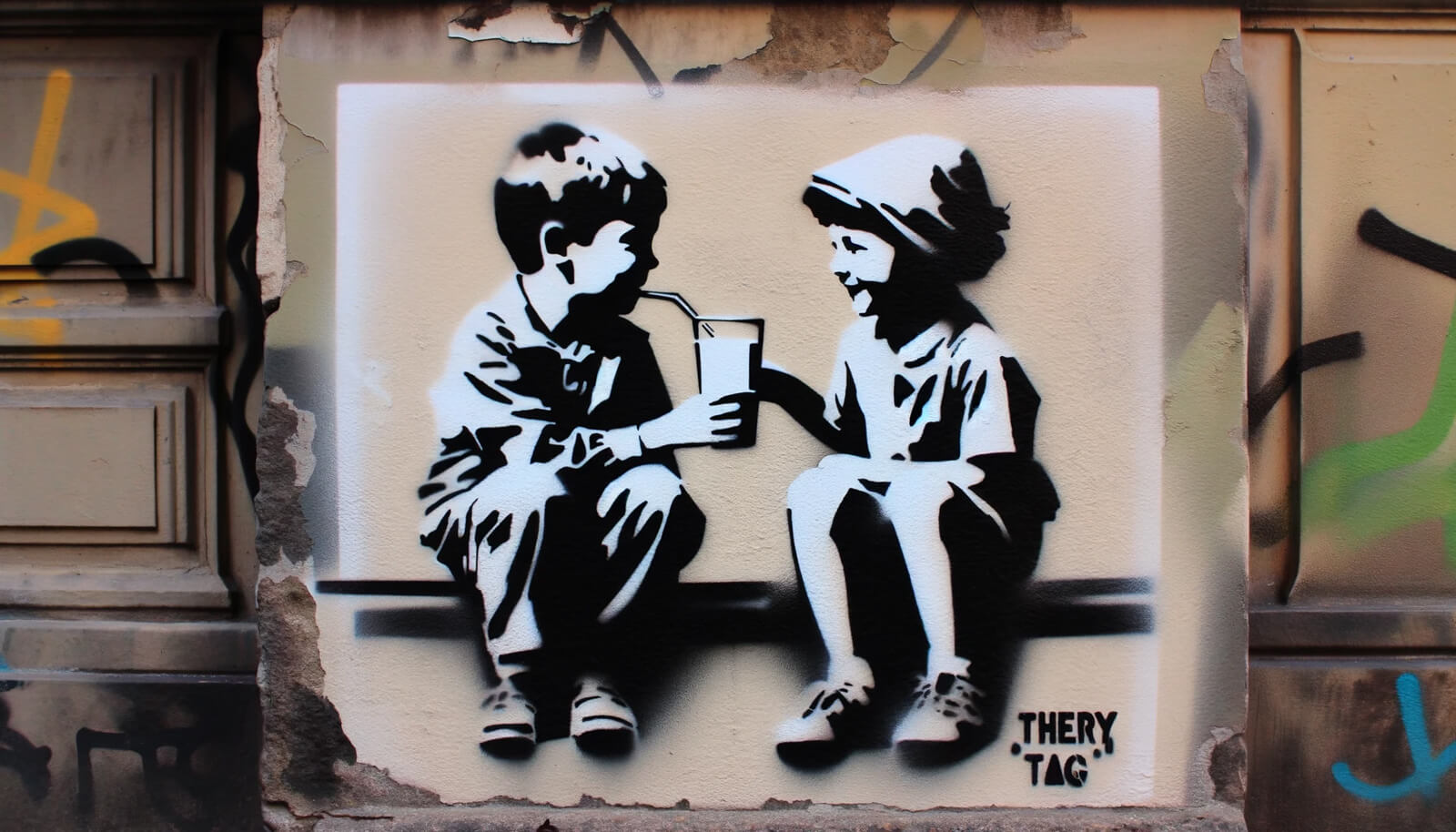 Shared Moments: A Sip of Innocence on an Urban Canvas